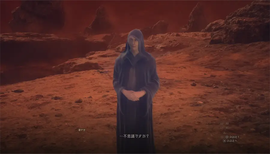 道中、しばしば「導き手」という霊体のようなNPCと遭遇し、抽象的な指示が出されます。