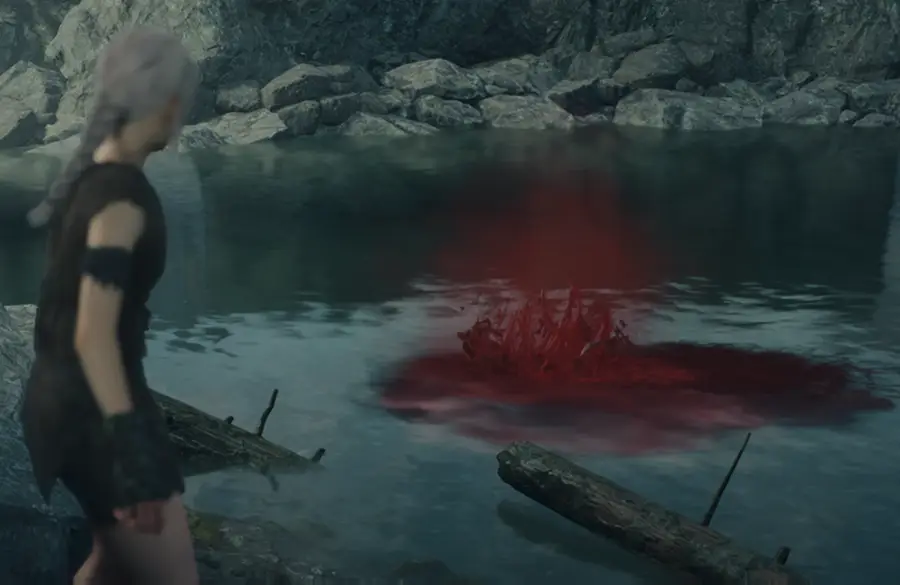 このゲームでは、一定以上水深のある水場に侵入するとヒュージブルという赤い触手に襲われ、ポーンならロストし、主人公なら直近のセーブまで戻されます。普通に考えれば、ただの「移動制限」のためのシステムと解釈できます。しかし、それなら透明の壁で移動できないようにすることもできるはずです。