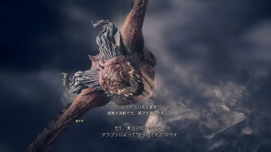 導き手は、これまで幾度となく世界が生み出され、虚無によってかきけされたと語ります。そして、その虚無に抗うために用意されたのがドラゴンであるとも。