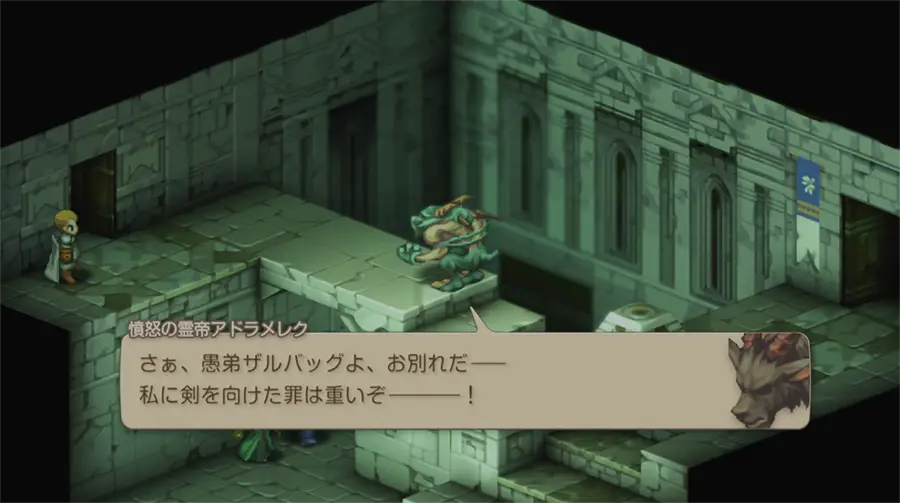 ラムザたちの強さに驚きを隠せないヴォルマルフは、その力の源が「聖石による光の加護」なのではないかと漏らします。もしそうであれば一筋縄ではいかないと、一時退却をします。