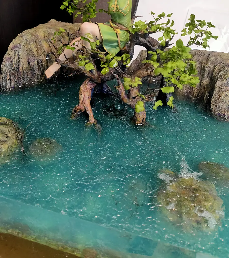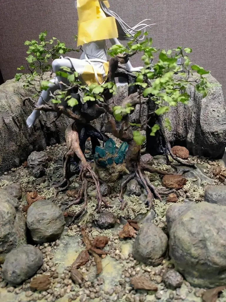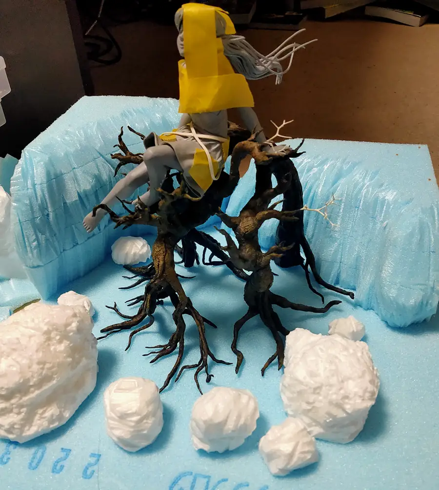 水中から生えている樹木という設定にしました。初期のイメージに寄せていく感じですね。フィギュアを先に作ってしまったので、土台の大きさは成り行きです。思ったより大きく、37cmにもなってしまいました。いや、デカすぎた。